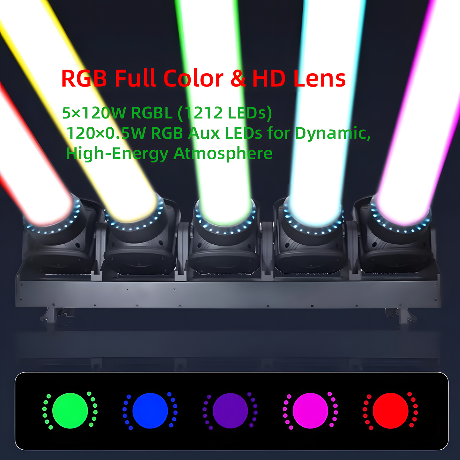 | Lamp beads | 5 pcs 120W RGB lemon yellow (1212 lamp beads) + 120 pcs 0.5W RGB fill light |